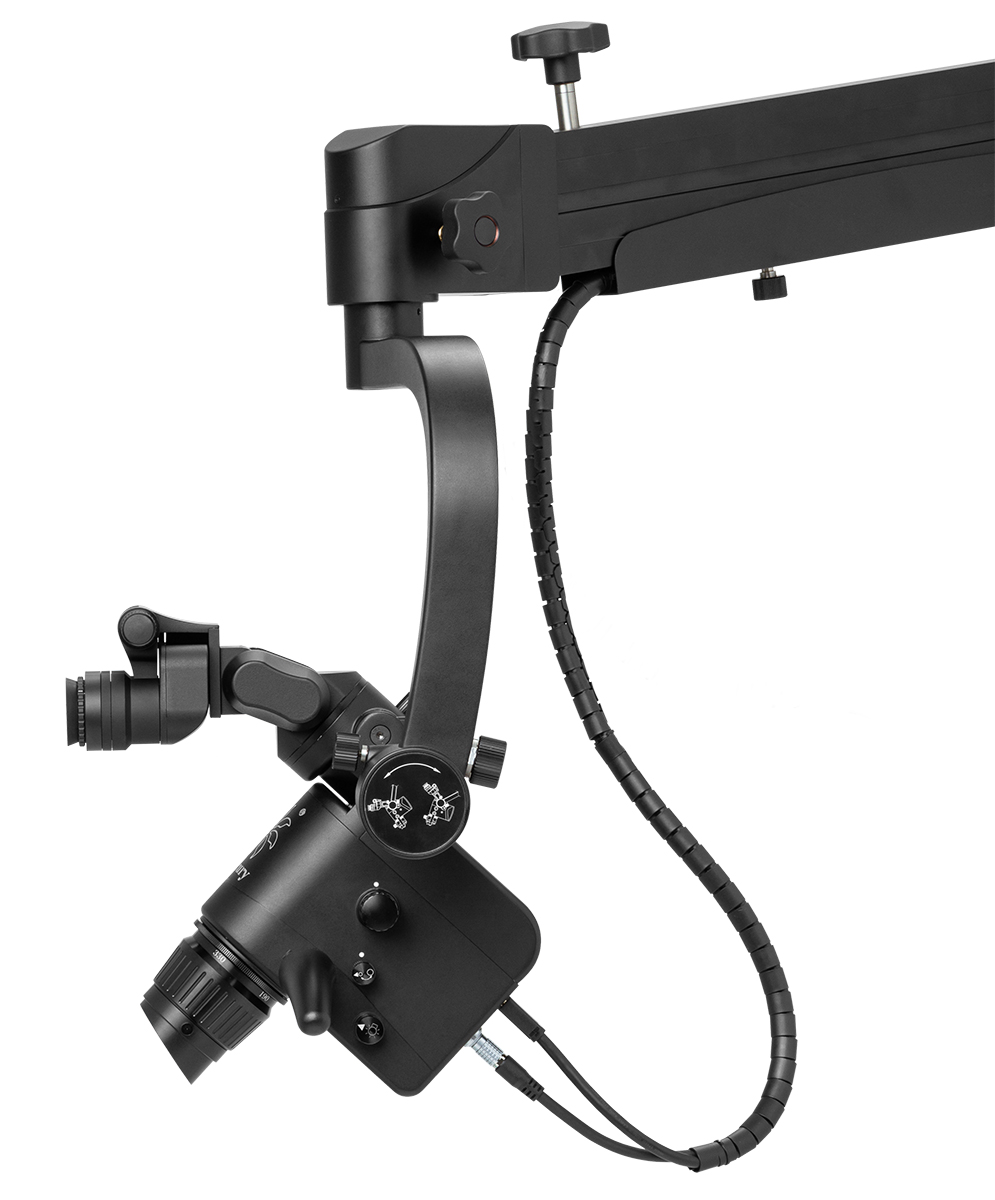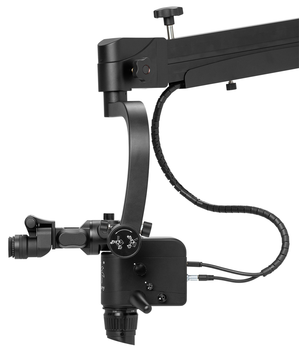 - Микроскоп можно плавно перемещать и фиксировать в любом положении. Длина плеча — 1860 мм.